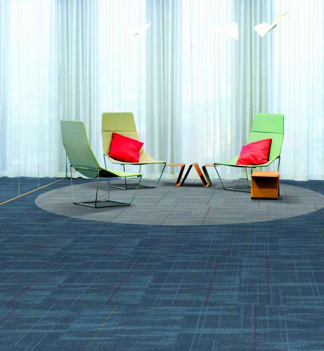 The new 60cm x 60cm tiles feature a durable nylon carpet surface paired with a practical Polyolefin backing. This combination creates a high-performance flooring solution that is not only aesthetically pleasing but also built for the demands of a dynamic office environment.