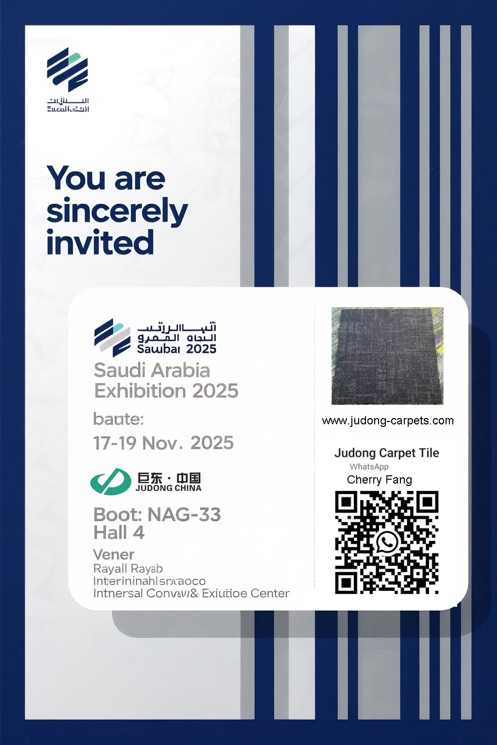 SUZHOU, China — [ October 31, 2025] — Judong carpet tile Co., Ltd., a leading manufacturer of high-quality carpet tiles and flooring solutions from China, is pleased to announce its participation in the prestigious Saudi Arabia Exhibition 2025. The event will take place from November 17th to 19th, 2025, at the Riyadh International Convention & Exhibition Center.